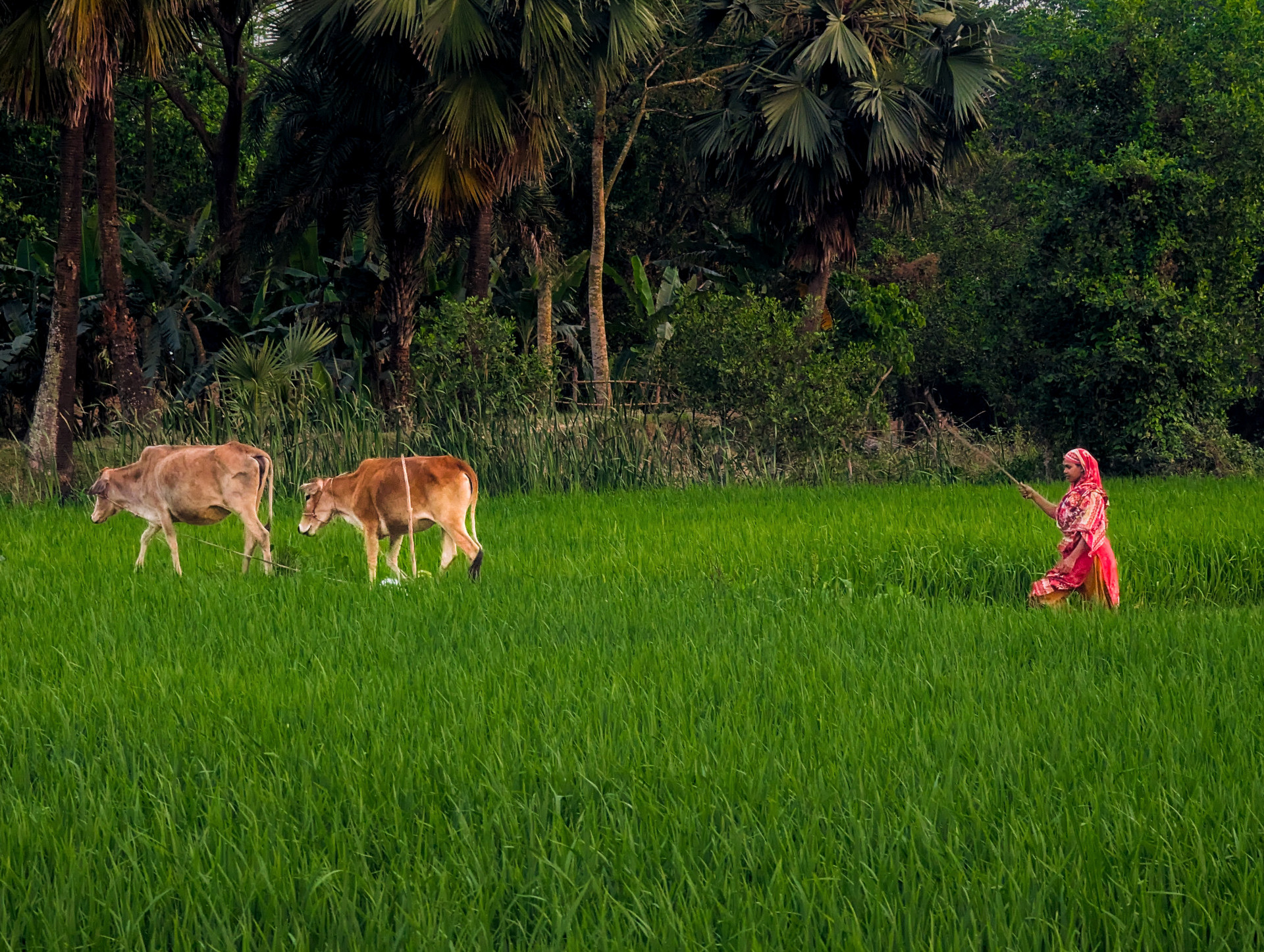Story : Deep in the Bengal countryside, the air smells of wet earth and palm fronds. A woman in crimson guides her cattle through lush rice paddies, a timeless dance of labor and harmony with the land.